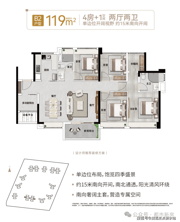 •119㎡改善大四房:南北通透设计,客厅、卧室空间更开阔,适合有改善需求的三口之家,或需要预留老人房的家庭,居住舒适度大幅提升。