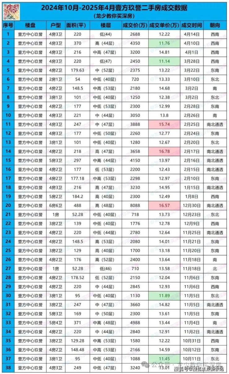 2024年10月-2025年4月【壹方玖誉】二手房成交明细如下: