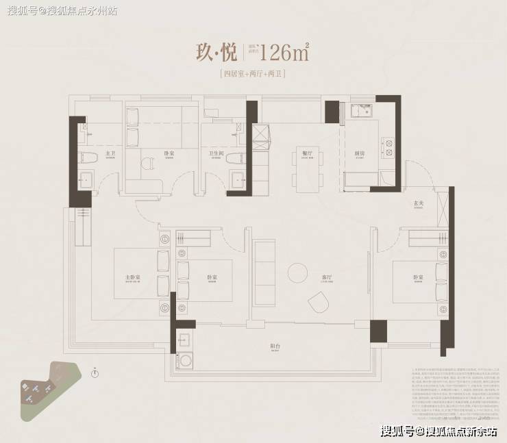三开间朝南:主卧、客厅、次卧均南向,采光面达11.2米,阳台连接次卧,形成超长观景面。