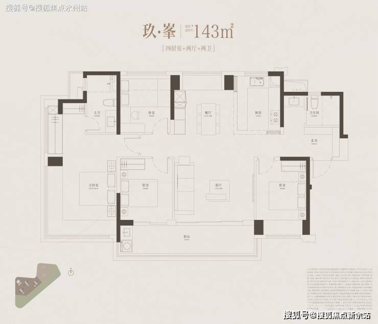 104-143㎡四房:均价 5.5-5.8 万 /㎡,总价 580 万 - 830 万,适合首改客群。
