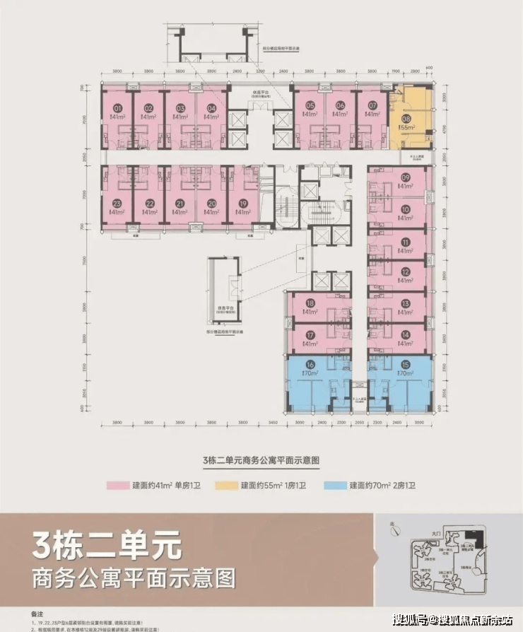 (41㎡单间760套、55㎡一房38套、70㎡两房76套)