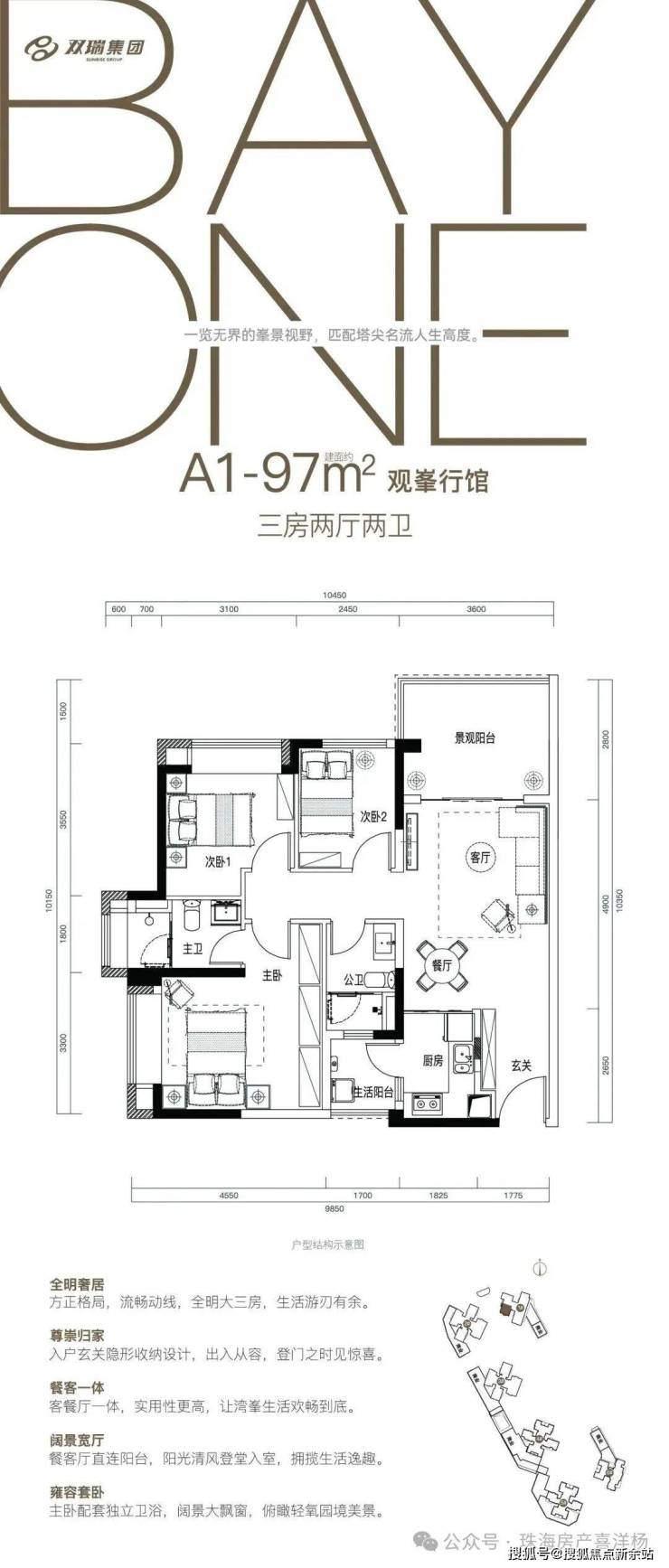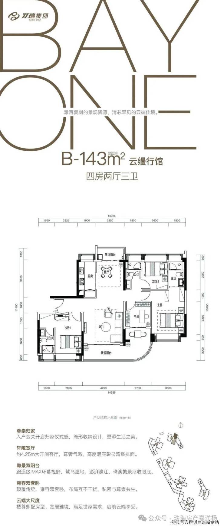 双瑞·藏珑湾户型丰富,建面约75㎡-143㎡多元空间,满足不同家庭结构的居住需求。采用无过道设计,空间利用率高;餐客一体直连阳台,采光通风俱佳,将山/海/湾/江/城/园6重美景尽收眼底;精选西门子、唯宝、日立等国际大牌奢装,演绎理想生活腔调。