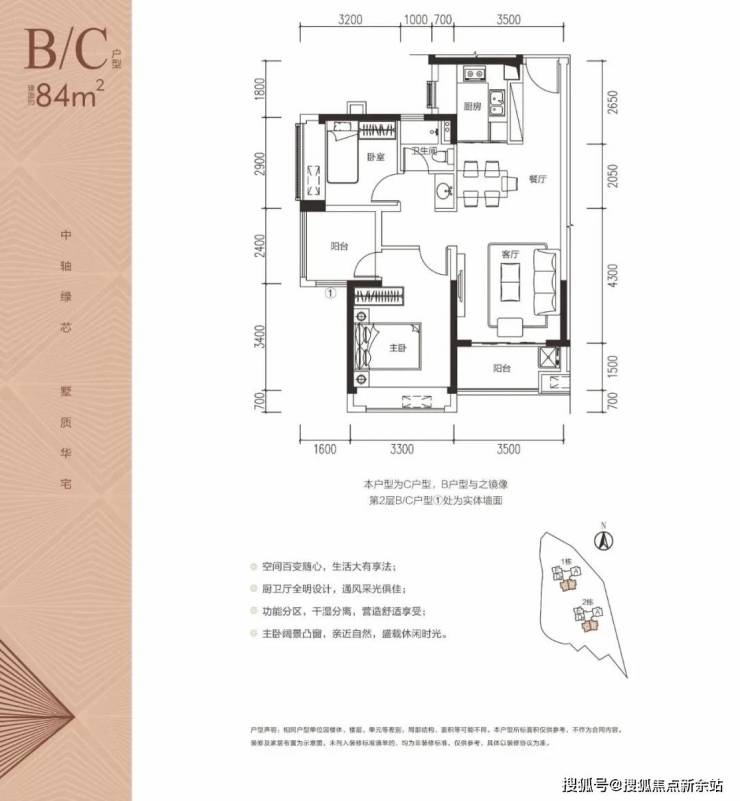 户型点评:均为朝南方位,户型整体方正实用,功能布局合理;两个卧室均带有飘窗,便于采光通风,阳台空间可灵动改做次卧或书房,整体利用率较高。