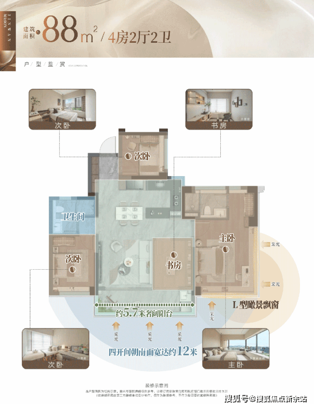 ☑️ 约88㎡灵动4房|人生全周期适配✨四房灵动空间随心切换,让家随生活成长✨四开间朝南+三面环绕采光加持,通透感拉满✨开放客餐厨+约5.7米阳台贯通成 “家庭互动场”