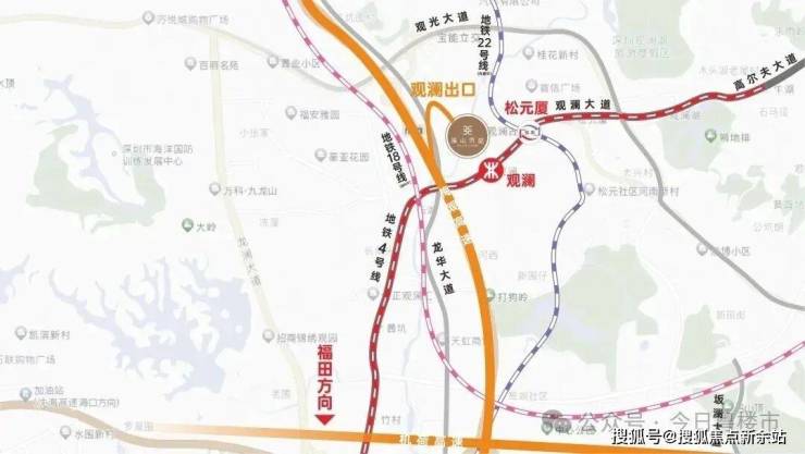 交通体系:项目毗邻地铁4号线观澜站(约800米)、长湖站(约700米),规划中的18号线及在建22号线(桂花站约1.5公里)将进一步丰富轨道交通网络;龙华大道、观澜大道、梅观高速等多维路网环伺,快速联通深圳北站、福田中心区与全市核心区域。