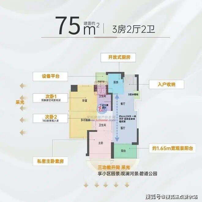 一共8条腿,选择比较丰富。70-80平户型在市面上有楼盘在售,但基本为3房1卫或2房1卫,溪山禾玺基于新规设计优势,75平直接升级为3房2卫,具备功能全的同时还压低了总价。