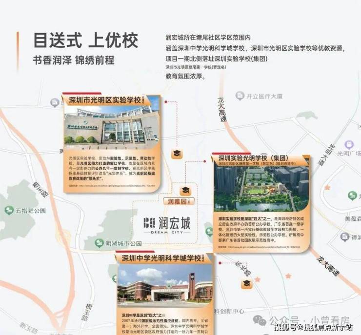 ④名校分校,片区更新单元内更规划3所九年制学校和多所幼儿园!两所名校分校,深中光明和深实验光明分校,此外项目周边还有光明实验学校,也是光明的老牌名校,整个片区的教育资源可以称得上是光明顶配。