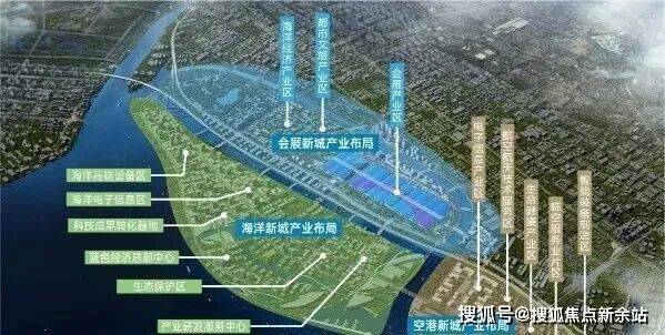 [海洋新城及会展新城]总建筑面积3284万平方米,总就业人口48.7万人,总居住人口34.05万人。