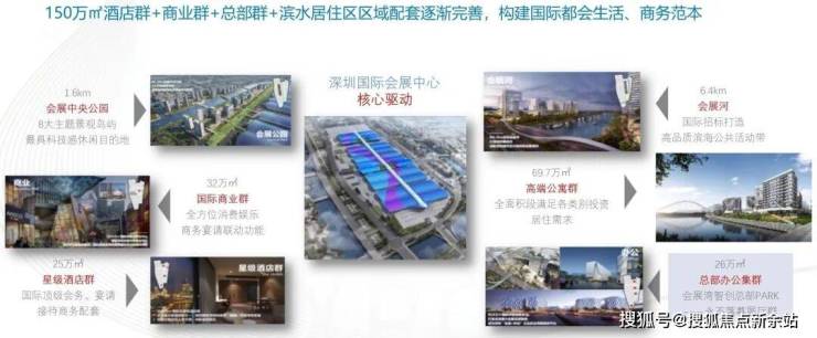 [深圳国际会展中心]年参展约1000 万人次,总产值超过1350亿。2035年达到总产值3000亿元,带来6万高端人才引入。