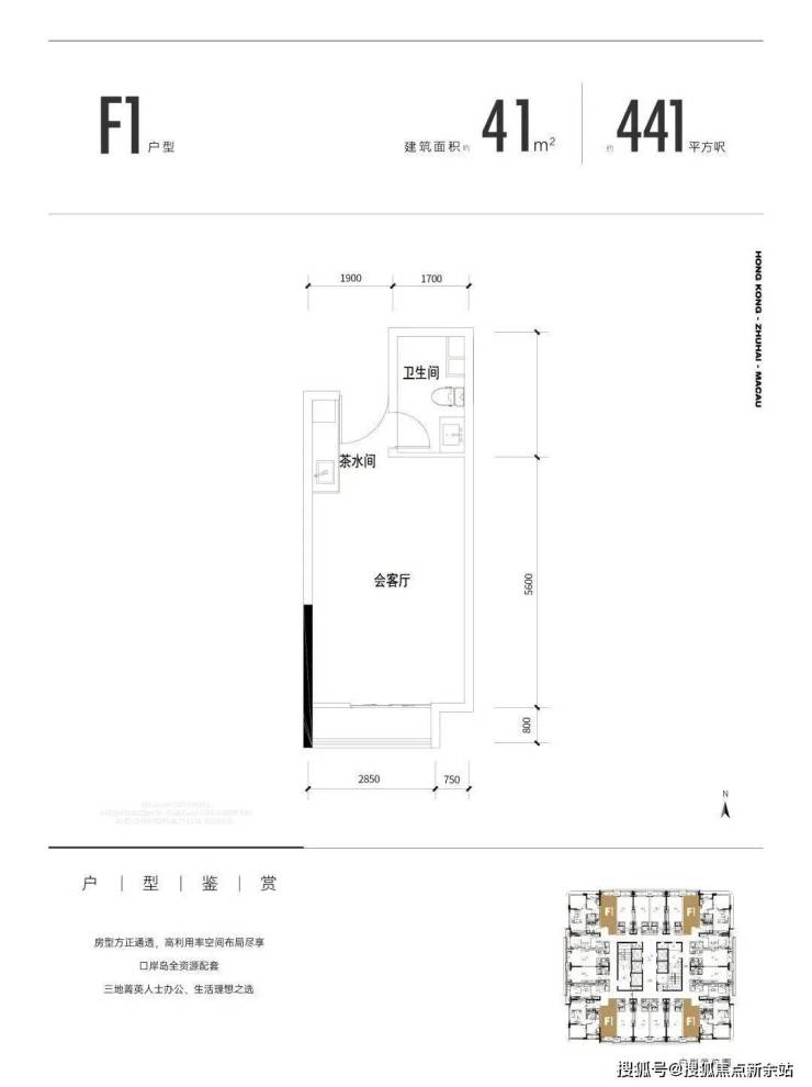 F1户型:建面约41㎡