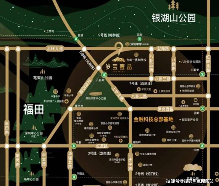 该项目与地铁 6 号线、7 号线换乘站 " 八卦岭站 " 无缝接驳,同时距离 9 号线较近,便捷的轨道交通让其成为真正的双地铁上盖物业。同时,岁宝壹品紧邻笔架山公园和深圳市体育中心,未来体育中心所在的空中连廊入口就在岁宝壹品旁边,让其与福田顶级城市资源无缝连接。此外,岁宝壹品与周边交通、市政配套、商圈、自然生态等完美融合,让项目成为城市建设一部分,让城市优势资源成为项目强大支撑。