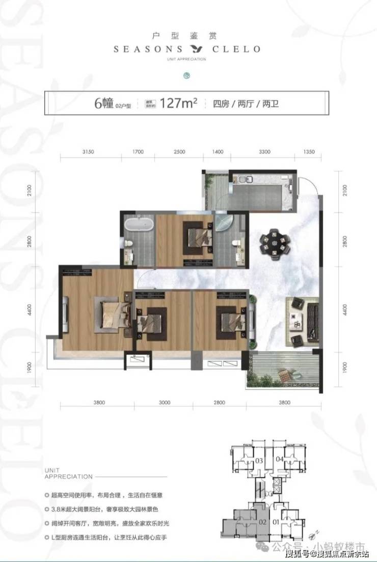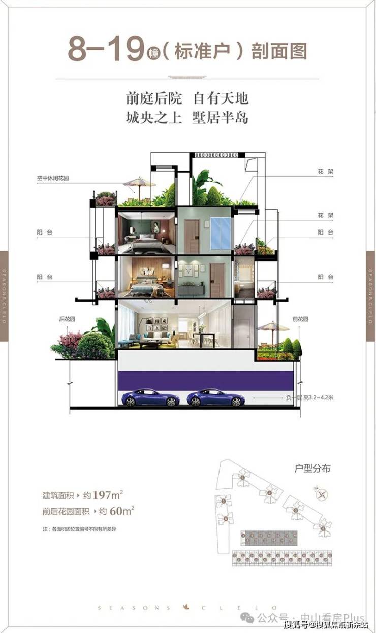 【布局】小区整体以围合式布局,最大程度考虑通风采光,别墅以中心泳池为景,不受任何视线遮挡;