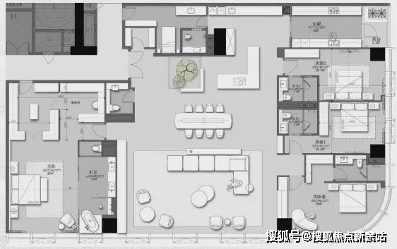 l方正主卧面积高达24㎡,明卫设计