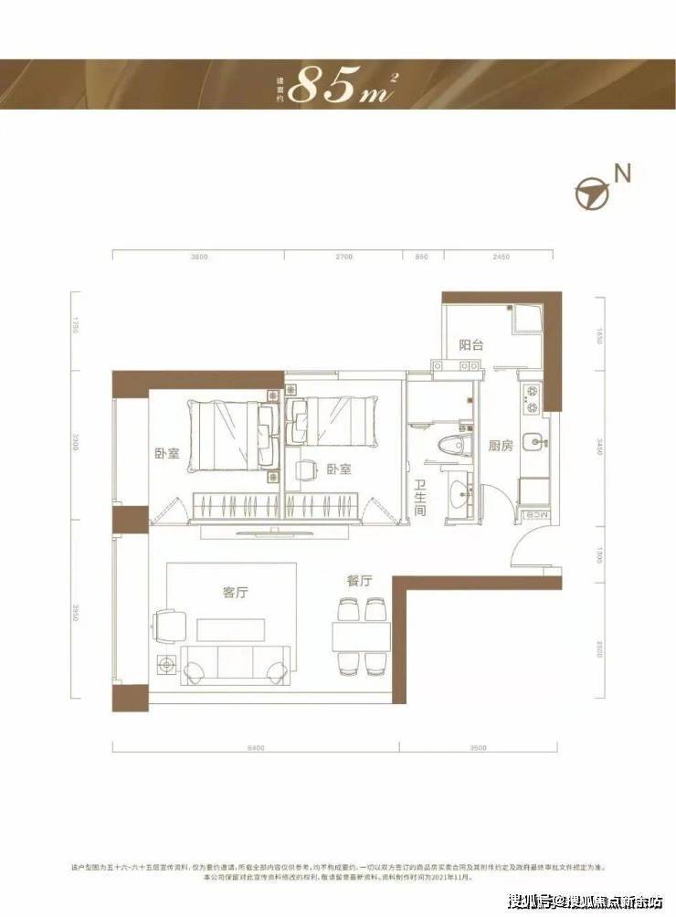 85㎡:2房2厅1卫