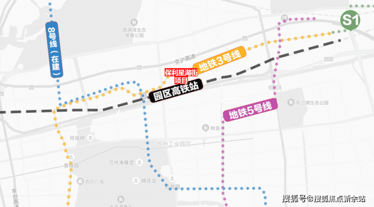 向西约1公里的园区站,约15分钟通勤上海,约1小时内到达长三角核心城市。