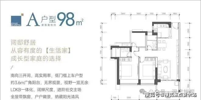 98㎡的3房2厅2卫,设计的是经典竖厅格局,LDKB一体化设计,客厅3.6米开间,三开间朝南,动静分区,3个卧室分别做到了主卧13.69㎡/次卧11.62㎡/次卧5.76㎡(包含墙体飘窗),都不用搭配飘窗做床,L型厨房,卫生间干湿分离,得房率约:89%(包含赠送),西南、东南或正南朝向。