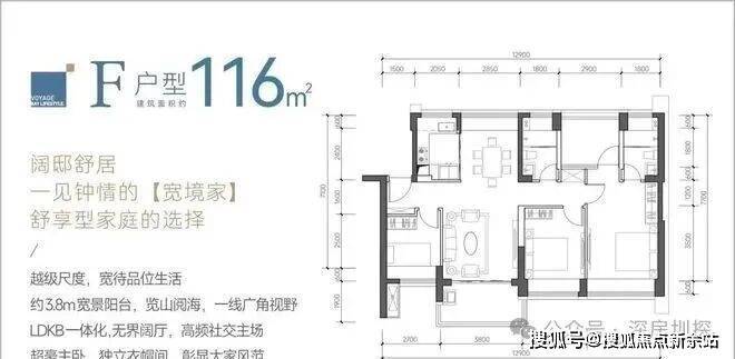 116㎡的4房2厅2卫,F户型,设计的是竖厅南北通透格局,餐客厅一体化设计,客厅3.8米开间,四开间朝南,4个卧室分别做到了主卧18.02㎡/次卧12.3㎡/次卧8.7㎡/次卧8.37㎡(包含墙体飘窗),都不用搭配飘窗做床,L型厨房,卫生间干湿分离,得房率约:88%(包含赠送),阳台主朝西南或东南向。