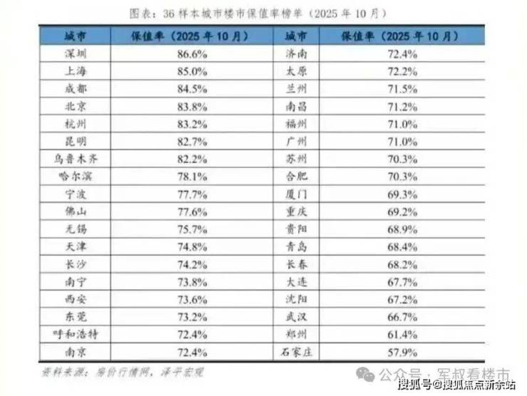 根据格隆汇11月11日泽平宏观团队发文称:全国36个重点城市,过去十年深圳的房地产保值率排第一,上海、成都位列前三北京、杭州也冲进前五,他们的保值率都超过80%。