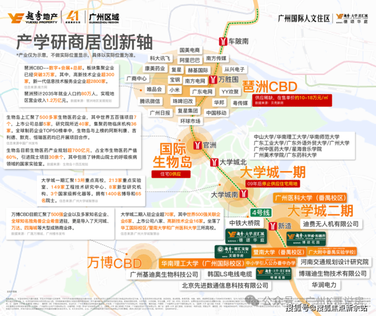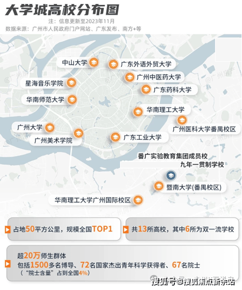 智识高地,同质而居:与暨大、华工国际校区为邻,13所高校环绕、约20万师生聚集,高知人才的聚居地。