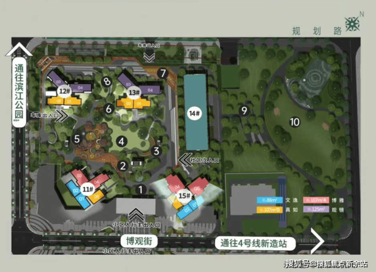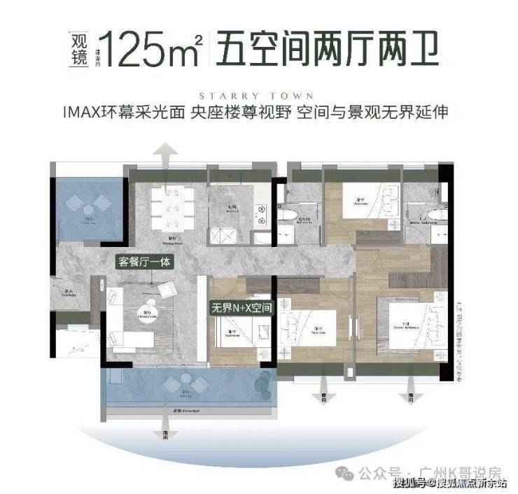 在售建面约88-125㎡三至五空间,户户朝南,皆为270°宽景大阳台,4-4.5面宽朝南,高使用率产品。