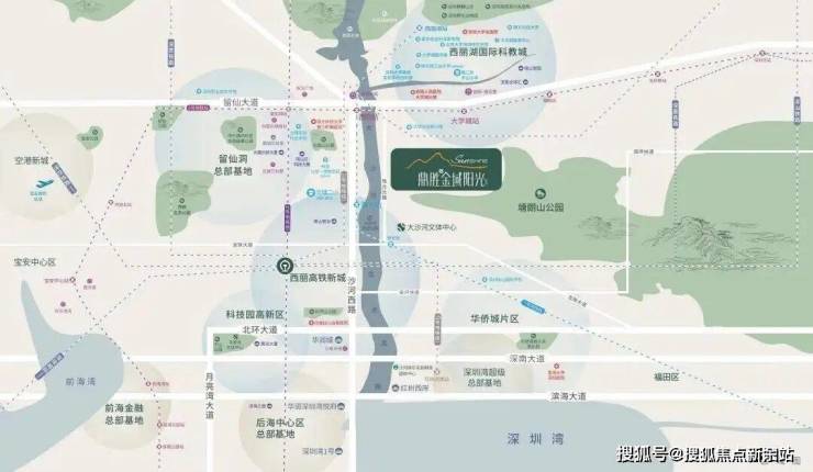 鼎胜金域阳光坐落于深圳市南山区西丽街道珠光北路126号,地处留仙洞总部基地、西丽湖国际科教城、西丽高铁新城三大核心交汇带,承接粤港澳大湾区多重政策红利,周边留仙大道、南坪快速等主干道环绕,临近地铁5号线、7号线,通勤便捷,区位优势得天独厚。