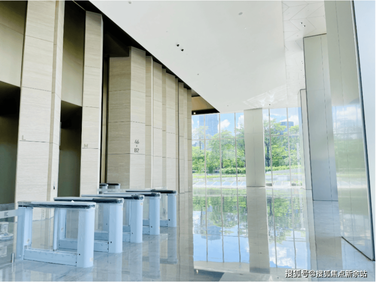 电梯品牌及数量:日立品牌,共42部,3000:1电梯配比,客梯最高可达4秒,标配目的地选层系统