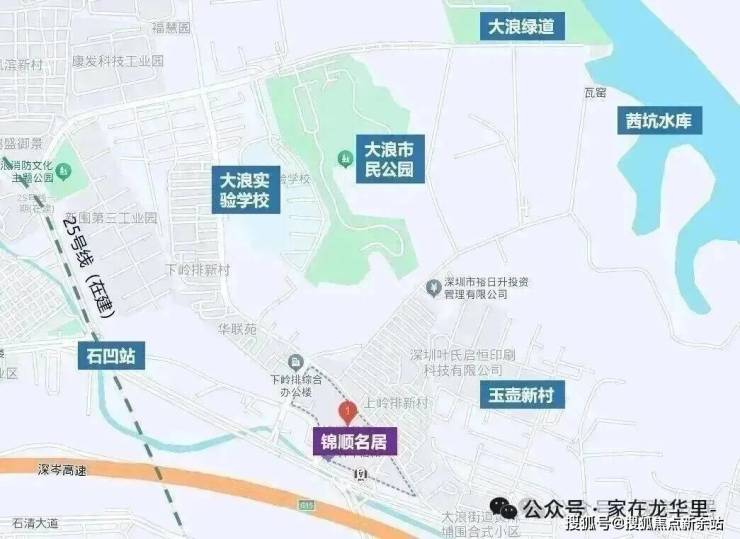 锦顺名居,北靠岭排围村,左邻大船坑市场,右近黄麻埔旧村,南边一路之隔接壤大浪中心区,与规划中的大浪时尚创意小镇相隔不远,特别距离华为在观澜拿下的大宗产业园占地76万㎡地块约6公里左右。