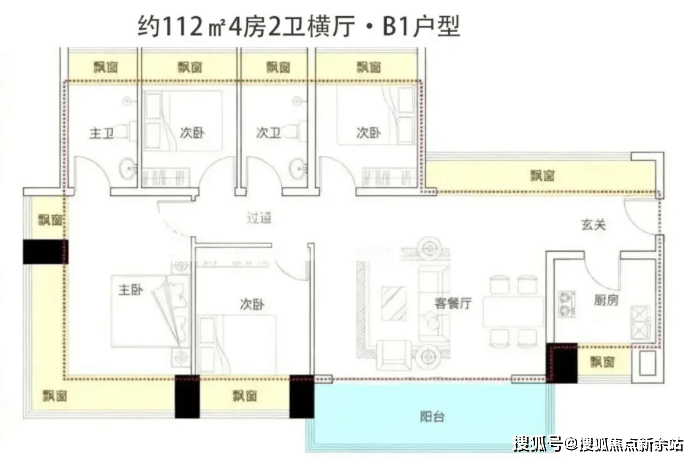 112㎡ 4房2卫(B2户型)
