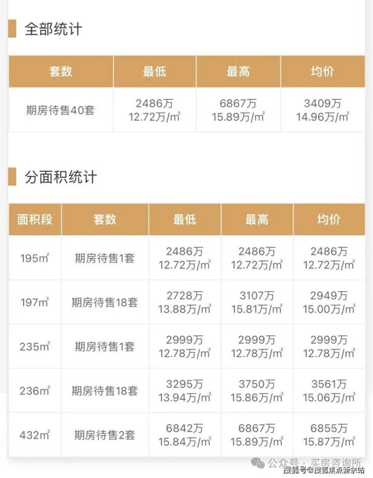 备案均价14.96万元/㎡,备案单价12.72-15.89万元/㎡,总价2485-3750万元/套。