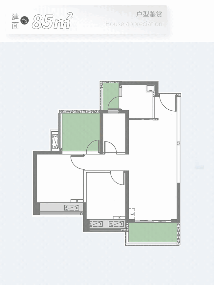 建面約85㎡(914ft² )2➕1房2廳1衛