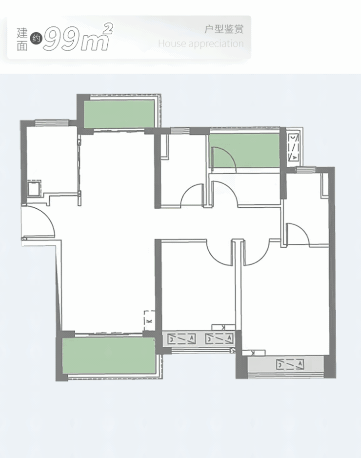 建面約99㎡(1065ft²) 2➕1房2廳2衛