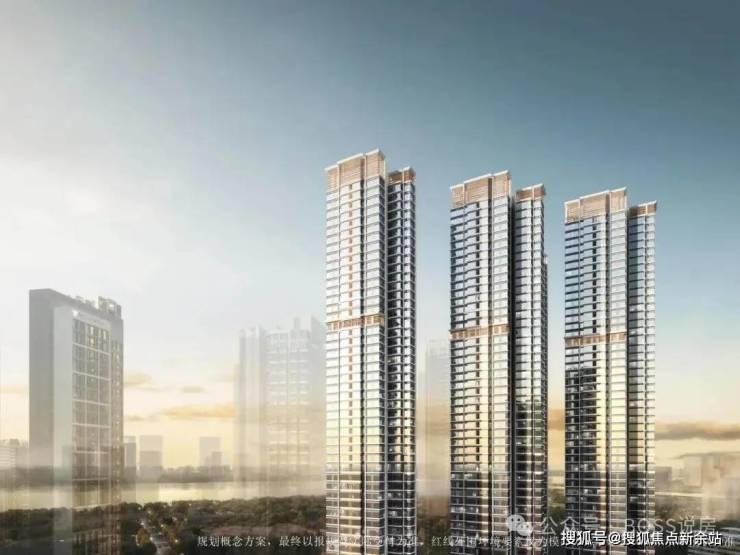 整体规划:小区规模不大,共有 4 栋住宅,约 1040 户,采用 4 梯 5 户的设计,每栋楼有 57 层,整体呈蝶式布局,这样的设计能够保证每户的采光和通风,同时也增加了居住的私密性