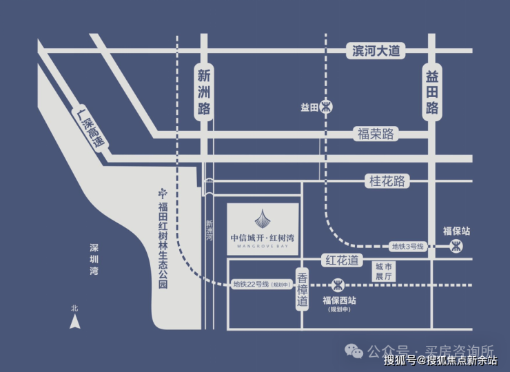 同时,毗邻香港北部都会区及福田CBD,向西对望深圳湾后海豪宅板块,地缘优势出众。