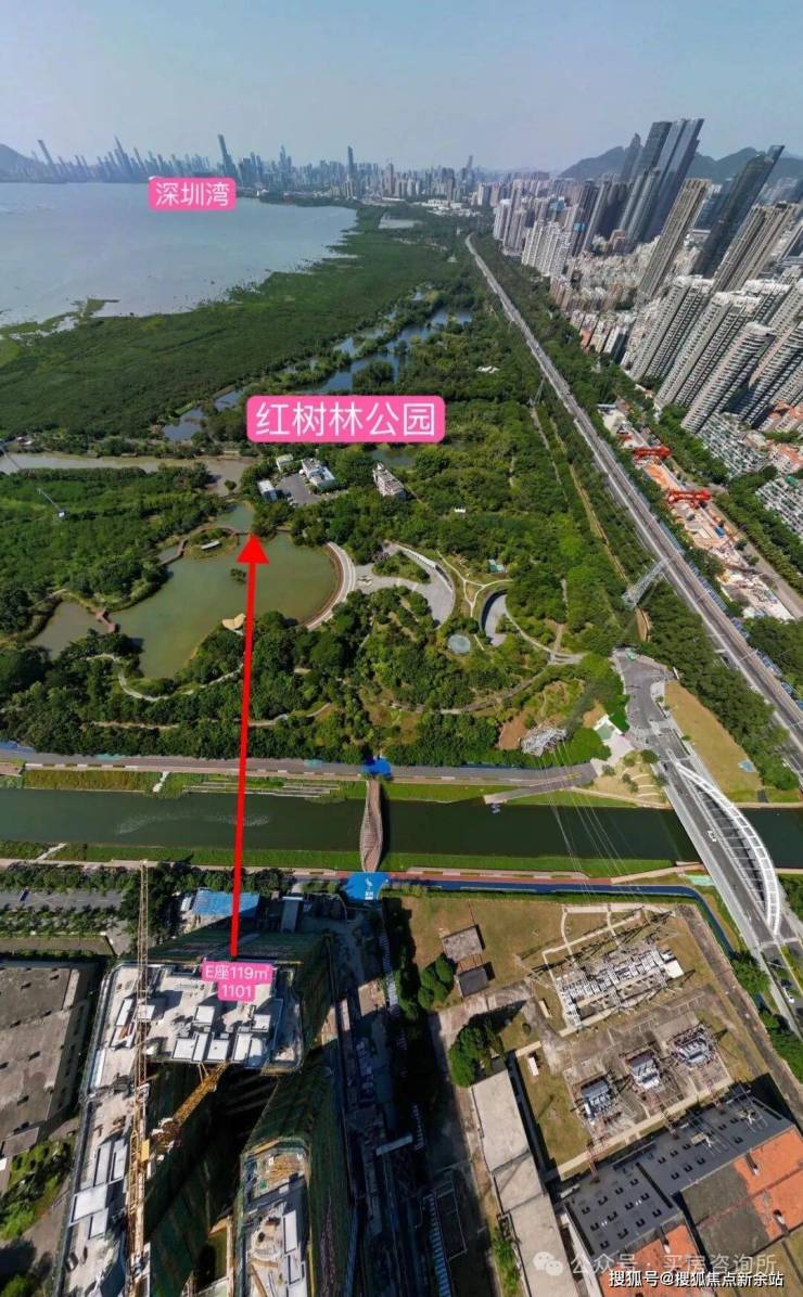 与其他过往的滨海楼盘相比,项目是真正的一线紧邻福田红树林公园,完全没有高速或者其他楼栋阻隔。