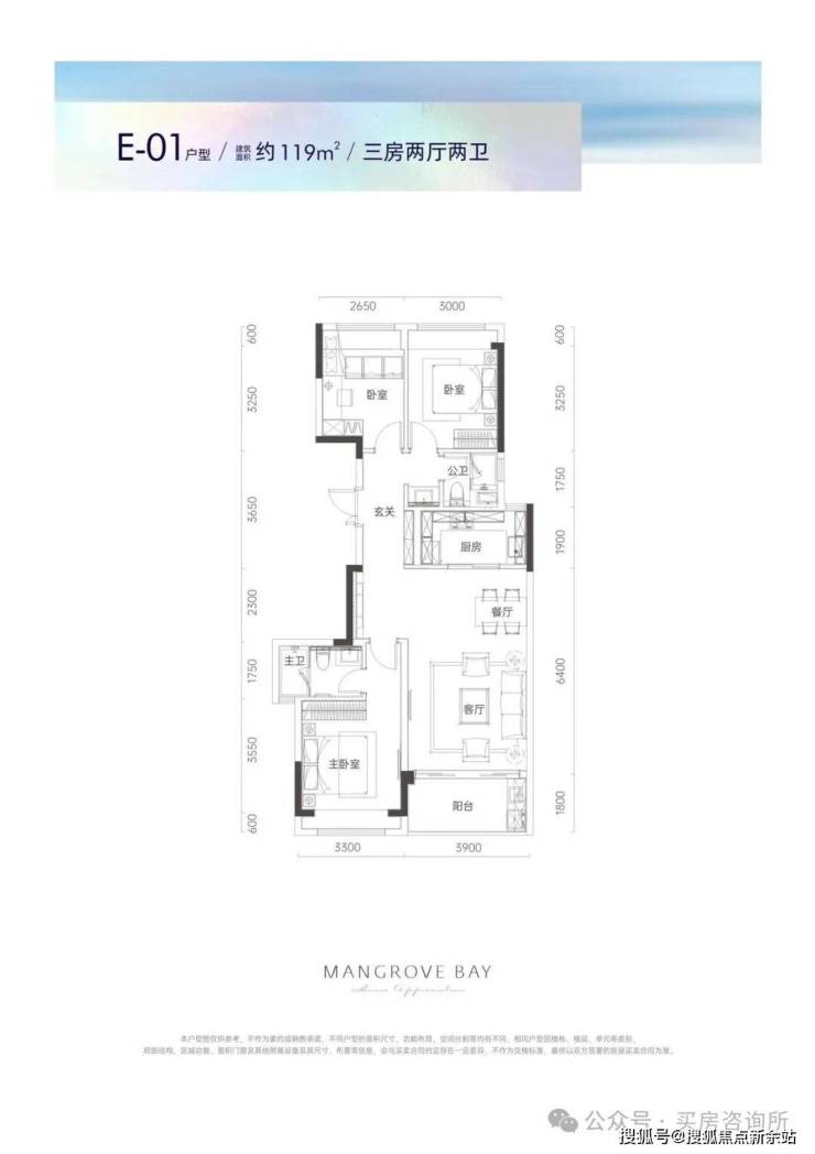 建筑布局采用小高层围合式,保证内部景观最大化。同时,项目限高仅15层左右,与周边红树林公园相融共生,形成极佳的低密宜居住区。