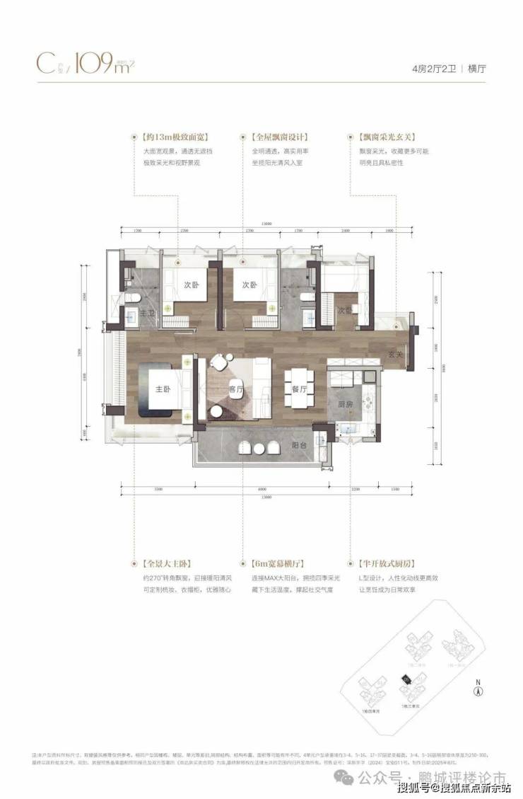 【产品面积】建面约108㎡/109㎡/138㎡~143m²海幕纯四房