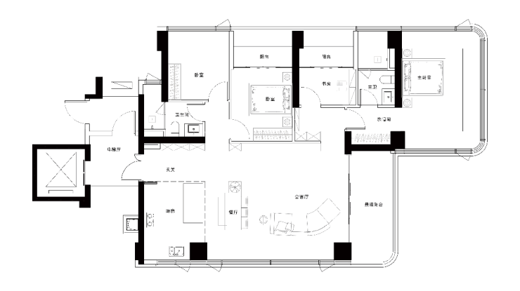 全景舱户型以LDKB一体化设计,重构家的融合场景。客餐厅、厨房与阳台流畅衔接,消隐传统空间的功能边界。以约187㎡户型为例,客餐厅进深超7.3米,配合中西双厨与岛台布局,形成通透而连贯的整体场域。备餐时目光可及客厅嬉戏的孩童,岛台旁自然成为家人交谈、朋友聚会的温馨据点。客厅、餐厅与阳台彼此延伸,营造出开阔而包容的社交氛围。这不仅是一处居所,更是情感紧密联结的所在——让互动自然而然,让家回归温暖的本真。