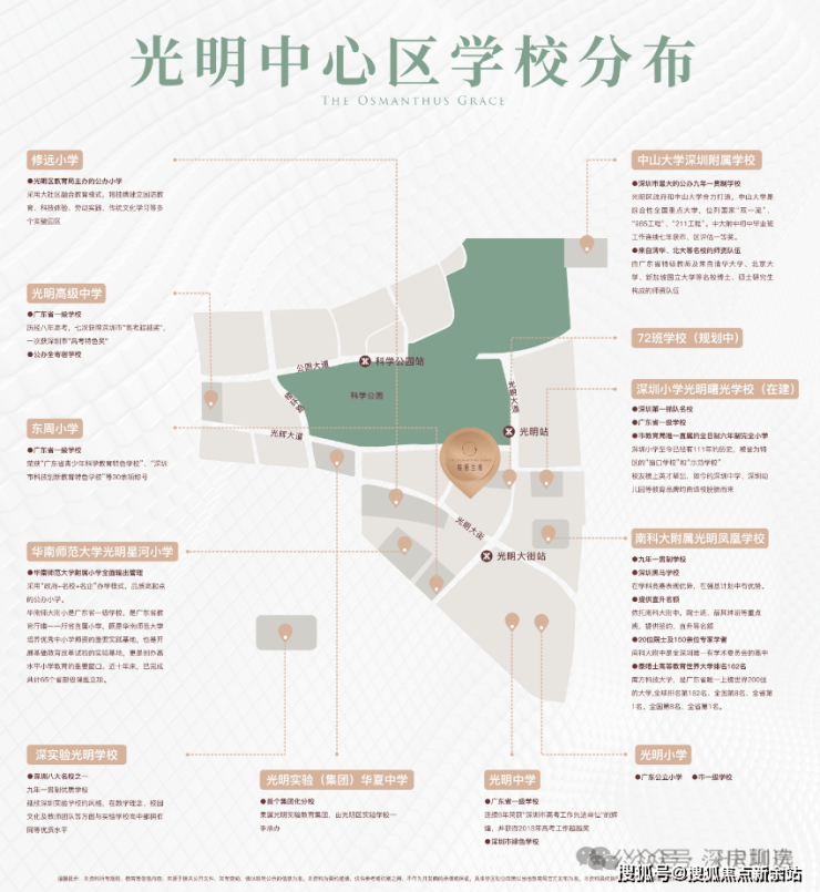 优质小学:项目北侧72班学校、光明小学、深圳小学光明曙光学校、华师大附小等