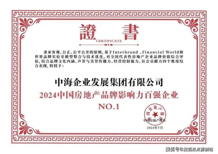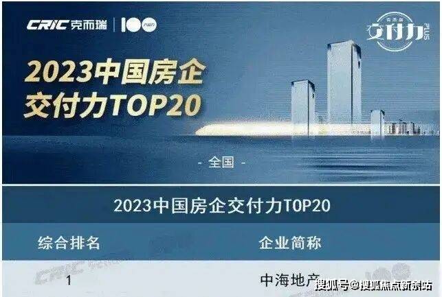 2024年3月中指研究院发布中国房地产企业销售排行榜TOP100,中海地产的各项数据指标均名列第一,中海地产“2023中国房企交付力第一名”。2024年7月荣获“2024中国房地产企业品牌价值百强企业第一名”,还获评“2024 中国房地产品牌社会贡献力企业”殊荣。(数据来源:中国房地产报联合专业房地产品牌测评机构)