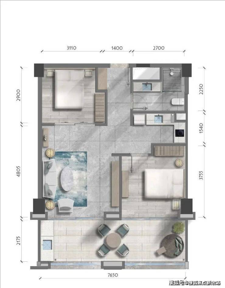 公寓户型:在售户型有建面约 49.15-69.73㎡的一室一厅一卫、建面约 90.12-128.2㎡的两室一厅一卫以及建面约 185㎡的三室两厅两卫。