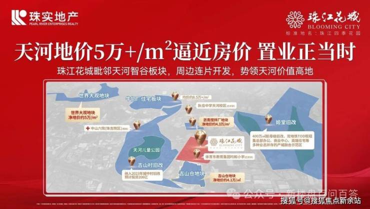 板块连片开发,南侧吉山仓地块净地价4.1万/㎡,北侧沥青厂地块净地价4.3万/㎡,周边206亿吉山村旧改提速,珠江花城价值潜力无限