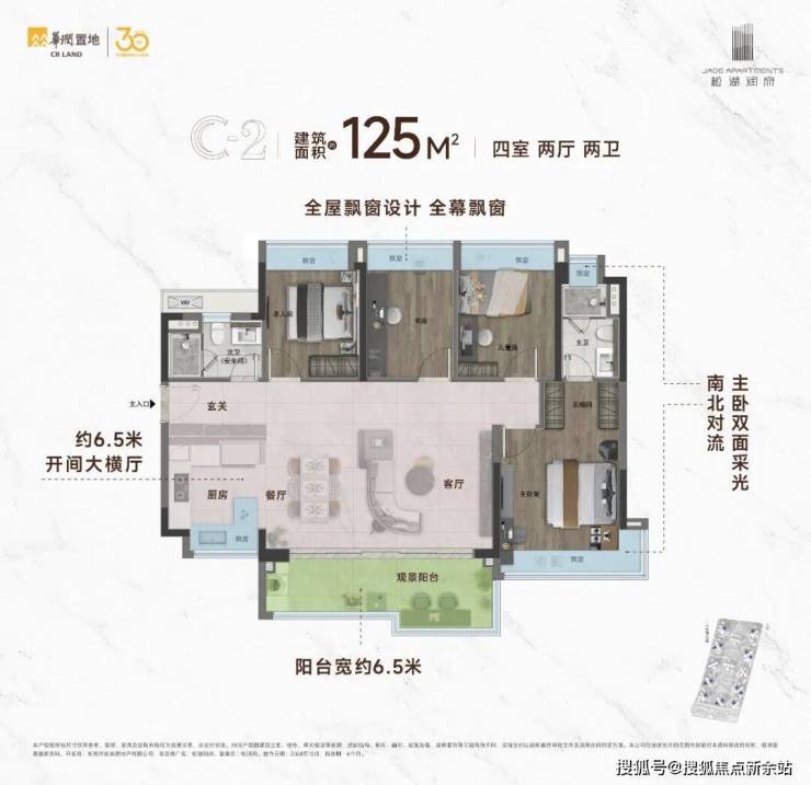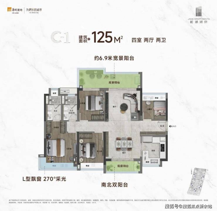 纵观项目目前主要在售的建面约125㎡C1/C2四房户型,两款户型各自都有值得考究的细节,亮点十足。
