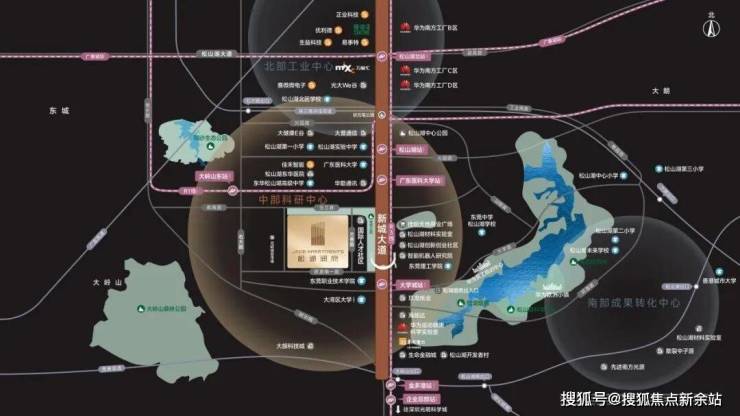 松湖润府距离松湖烟雨约800米,紧邻新城大道,通过这条与地铁R1行走轨迹高度重合的主干道,链接着松山湖烟火气的一面。