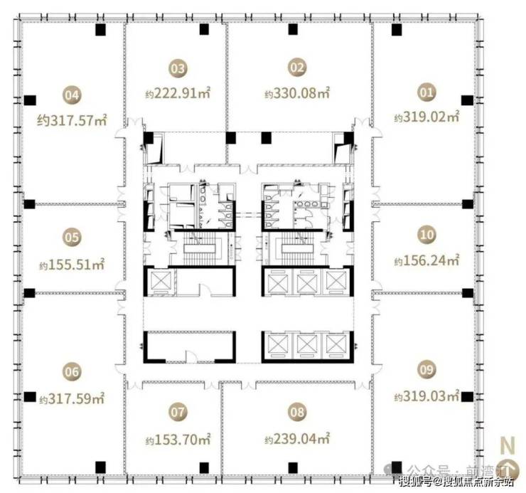 交付标准:10个经理办公室+4个高管办公室+5个大会议室+2个中会议室+前台接待区+办公区格局