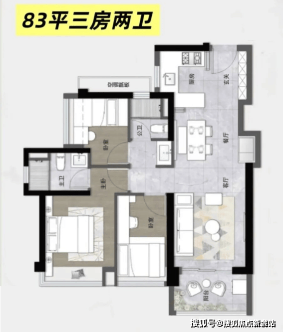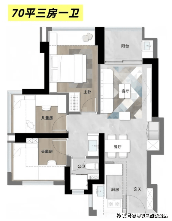 其中70㎡做3房1卫(附户型图)。3梯6以及3梯7户设计