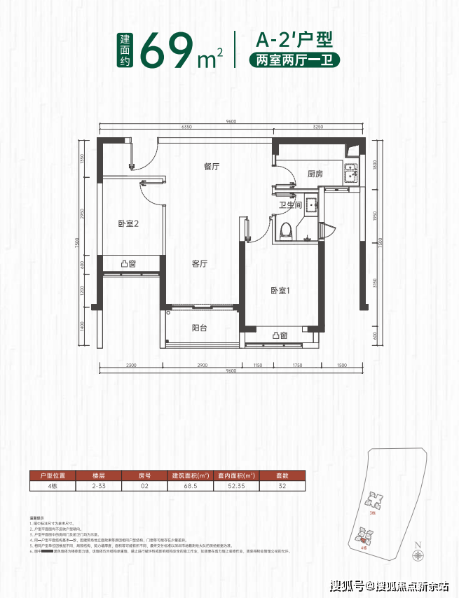 两房接近69㎡,共190套,总价约192-206万;