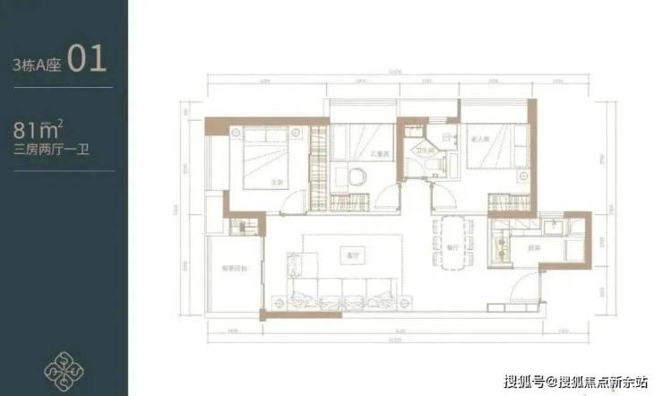 关内典藏主力户型:建面约78-81㎡3房2厅1卫(住宅)