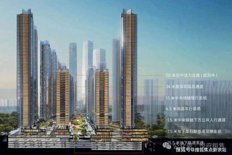 创新打造地上地下七重结构立体化交通系统,不同交通系统分层互联,人行系统、城市公共道路系统、地下轨交系统快速接驳,最大程度实现人车分流,科学化疏解交通压力。