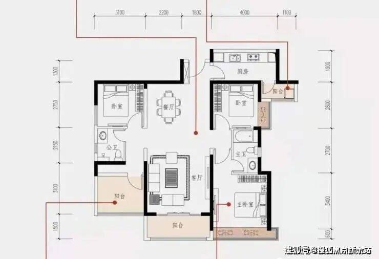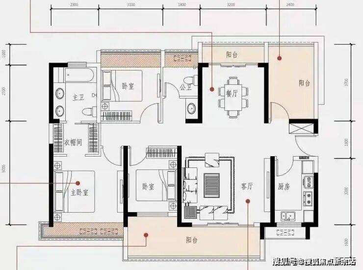 亮点:餐客厅双阳台 7米超大阳台 豪华主卧