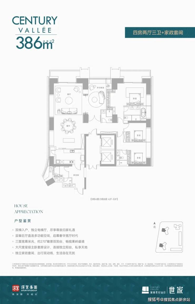深业世纪山谷·世家主推建面约233/280/386m²纯粹大平层户型,高区还有少量建面约420-1080㎡墅级顶复。